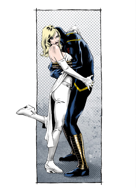 Por otra parte tratar de buscar esa "iconicidad" que debería tener un superhéroe. No creo haber alcanzado ninguno de los objetivos, pero estoy satisfecho. He hecho avances, he descartado caminos erróneos y he hallado otros que merece la pena explorar. De todas formas, estos experimentos me ofrecen escasas soluciones para el tiempo que invierto en ellos... me sale mucho más a cuenta experimentar sobre la marcha cuando dibujo cómics.